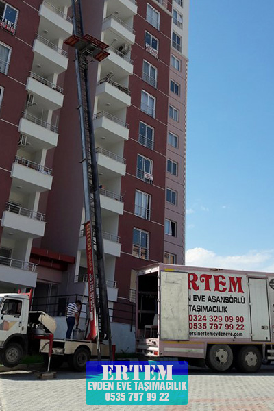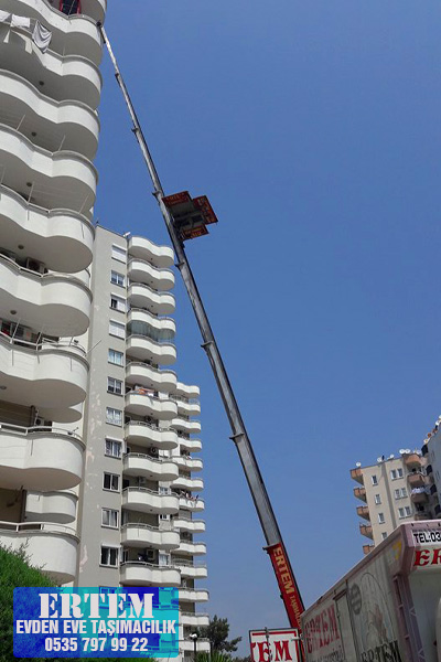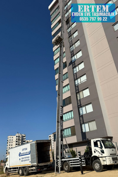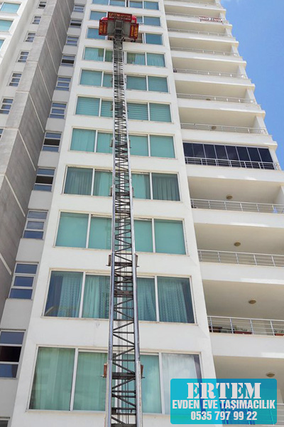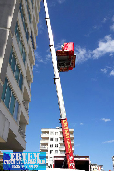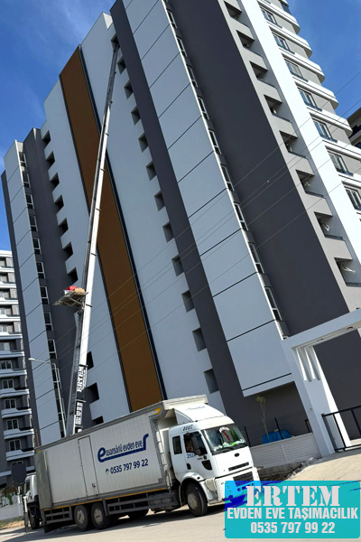 Yüksek binalarda taşınma sürecinde yaşanan dar merdiven, dar asansör veya bina içi taşıma zorluklarını unutun! Ertem Nakliyat’ın 25 katlı mobil taşıma asansörleri, bu sorunları ortadan kaldırarak eşyalarınızın doğrudan balkondan veya pencereden güvenle taşınmasını sağlar.